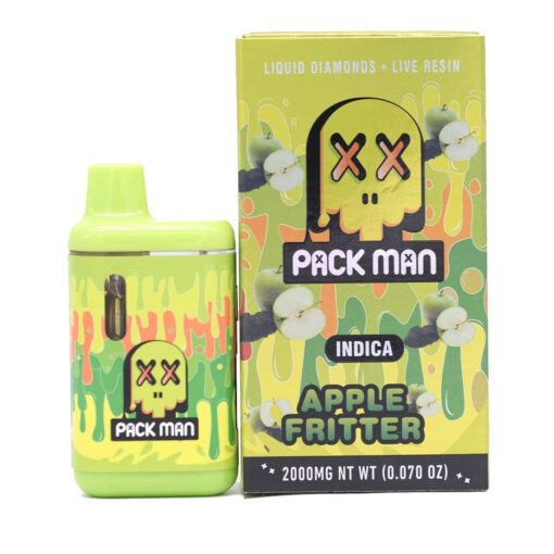 The Packman Apple Fritter 3g is a powerful, ready-to-use THC vape pen containing approximately 3 grams of highly potent cannabis distillate, specifically designed for users who want longer, flavorful vaping sessions without constant refilling or device changes. Packman disposables are known for their large capacity (more than standard 1g or 2g models) and more intense vaping experience.
